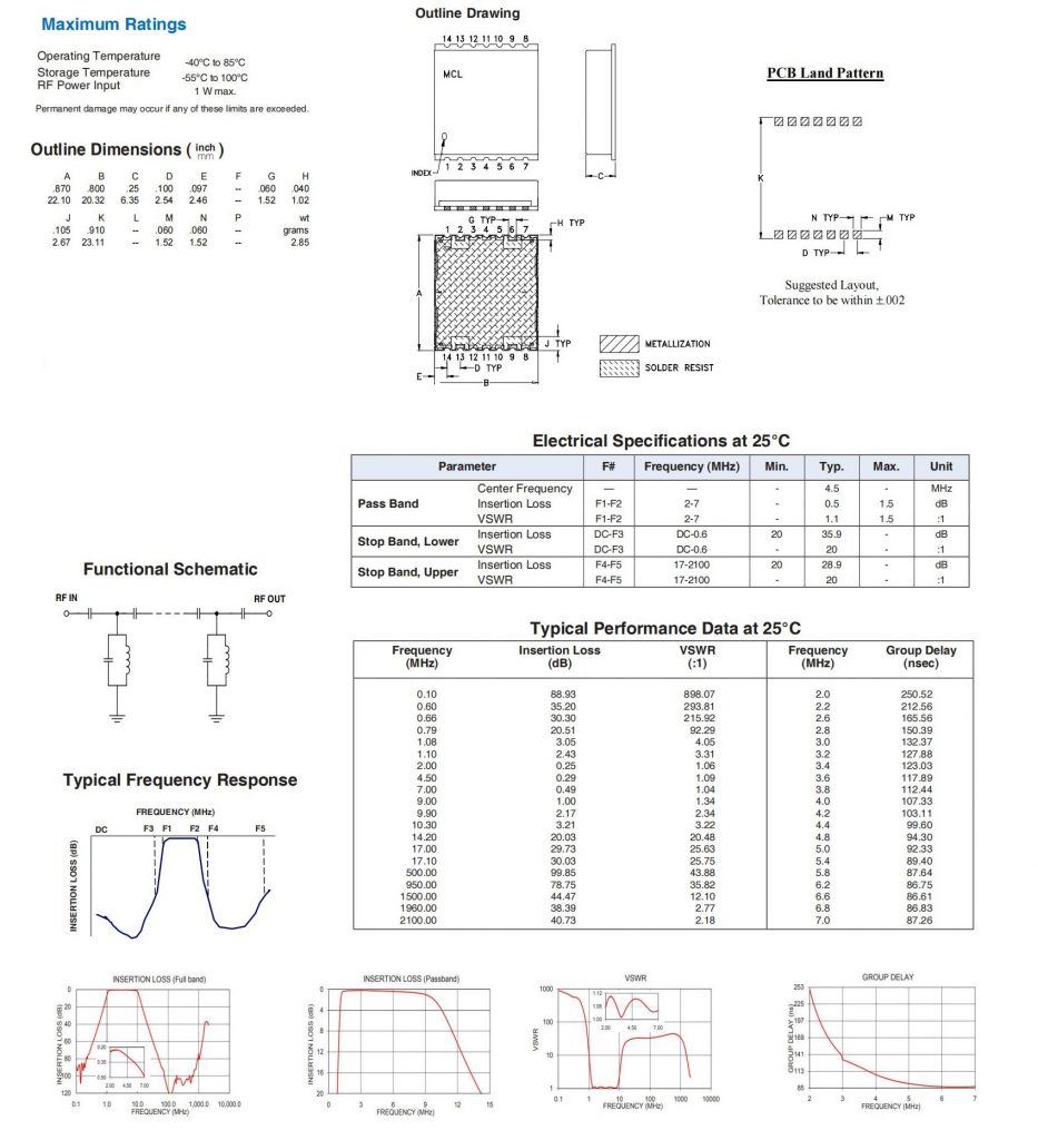Storage Temperature -55°C to 100°C RF Power Input 1 W max.
