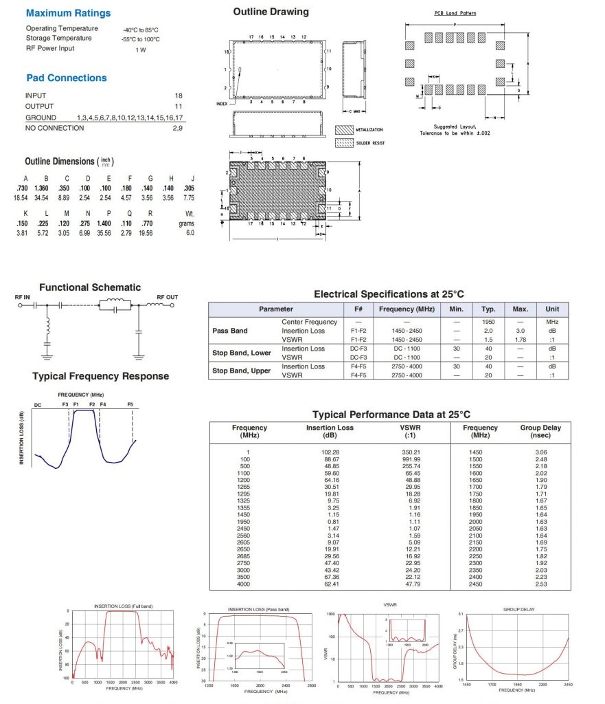 50W 1450 to 2450 MHz Bandpass Filter